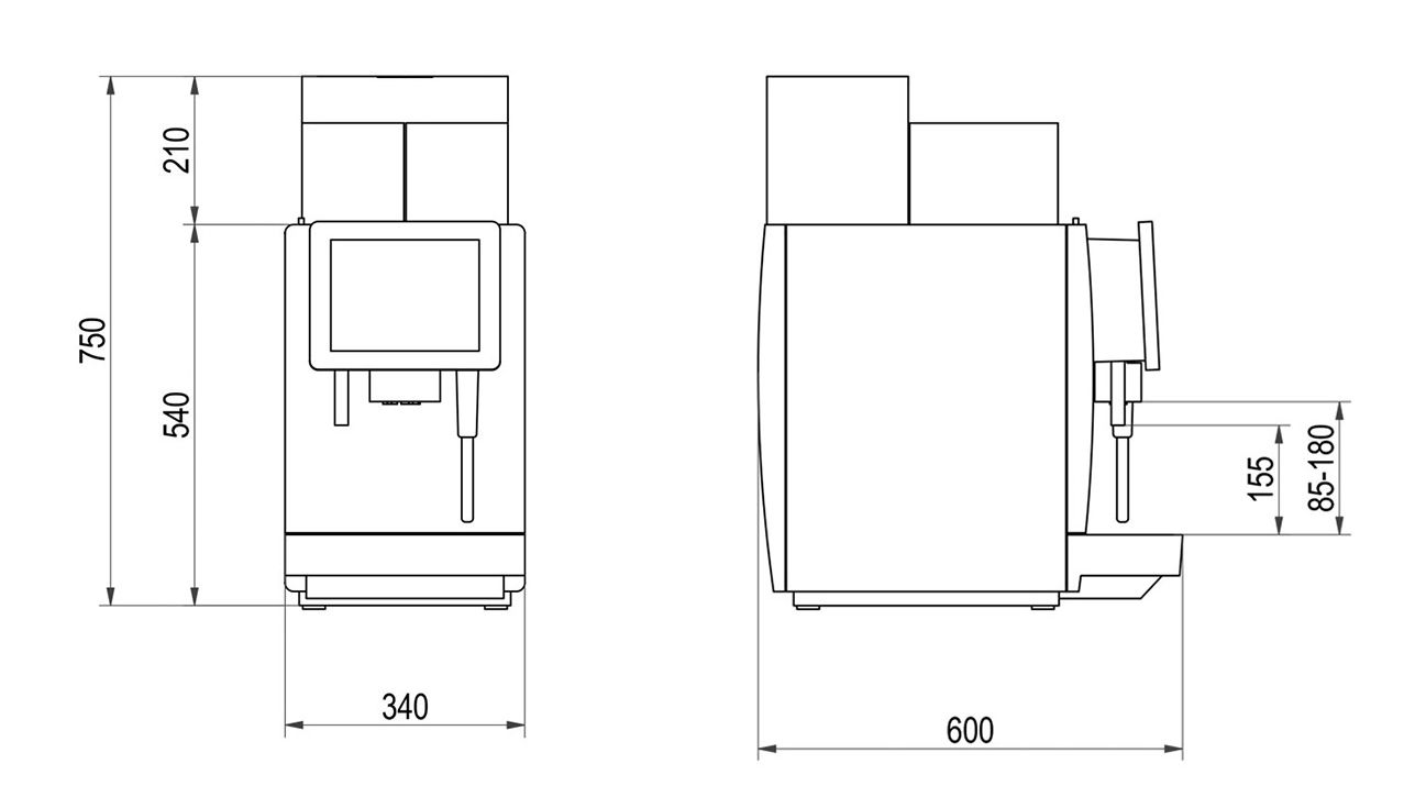 Höhe Kaffeeauslauf > 85-180 mm